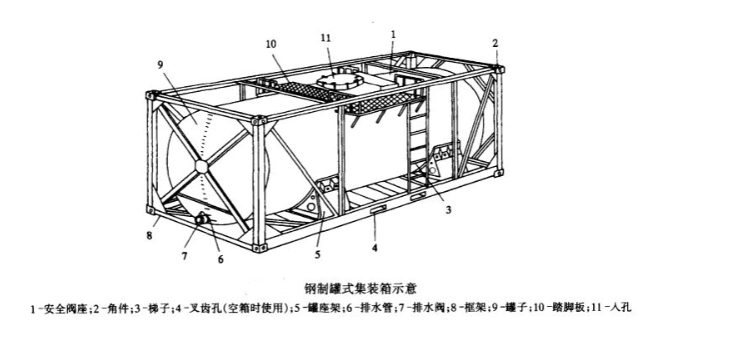 罐體四周有起保護和吊裝作用的角部承力框架。罐箱的外部框架尺寸完全等同于國際標準20集裝箱的尺寸(長20英尺,寬:8英尺,高:8英尺/6英寸)。